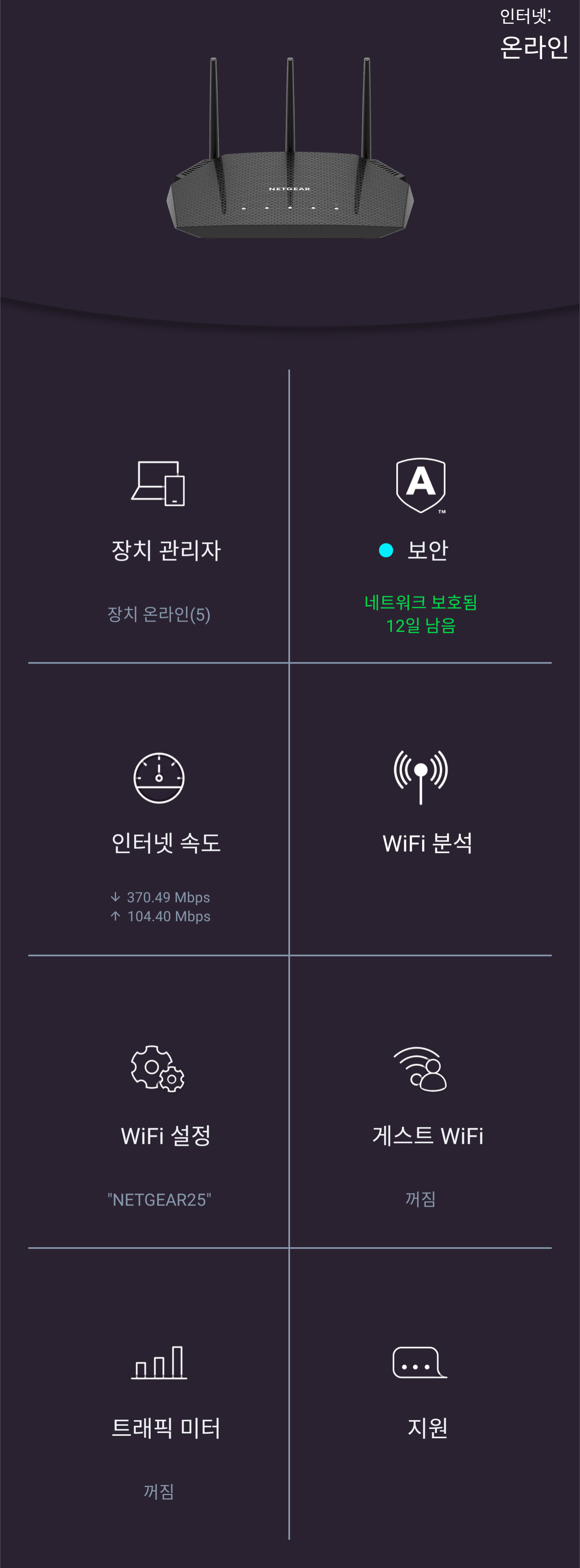 처음으로 넷기어 공유기를 사용해봤는데, 아직까지는 아무 문제가 없고, 특히 펌웨어를 앱에서 직접 컨트롤 할 수 있는게 큰 장점인 제품인듯 하다. 10만원 대 이하로 구매 가능하다면 구매하기 좋은 제품.