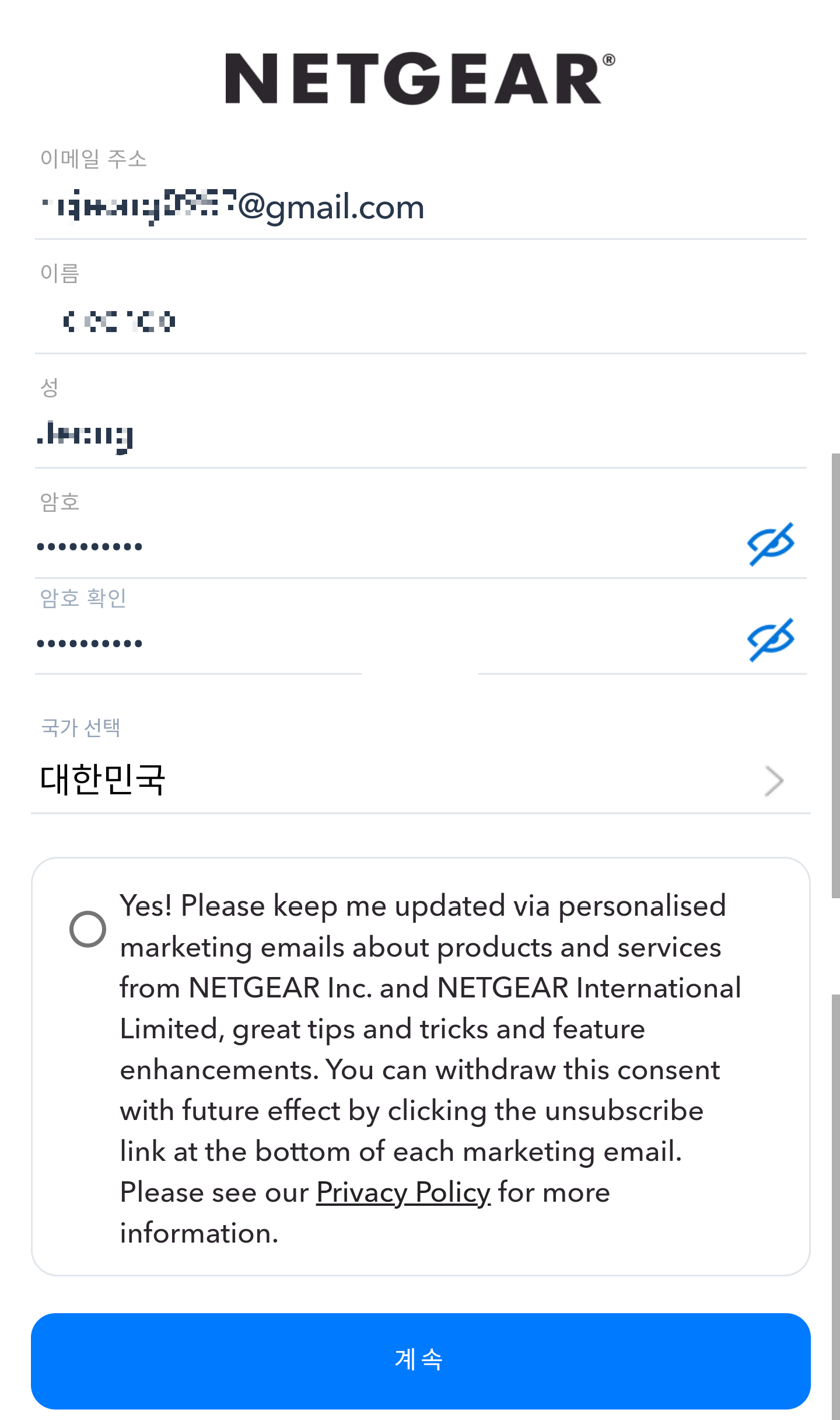 개인 정보를 입력하고, 계속 버튼을 누르면 앱과 공유기가 연동되기 위해 연결을 시도한다. 공유기를 연결하고 앱을 깔아서 처음 세팅을 할 때, 안드로이드 폰은 잘 연결이 안된다는 이슈가 있는데, 두번 시도 끝에 결국 성공했다. 특별히 세팅 할 것은 없는데, 공유기와 앱 연결이 자동으로 안되어서 연결 될 때까지 재시도했다. 아이폰이 있으면 아이폰으로 연동하는 것을 추천.