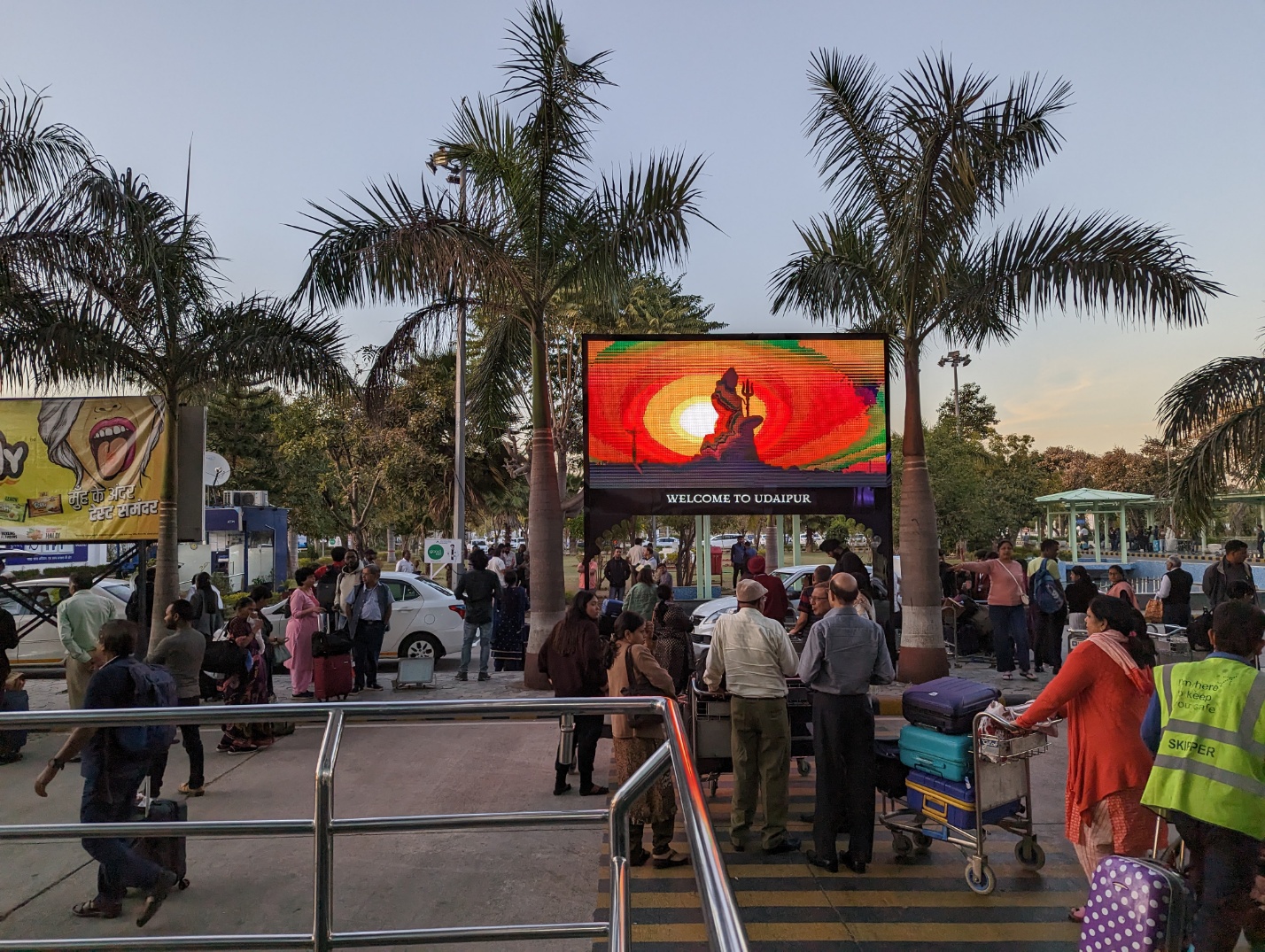 우다이푸르 공항 출국장, 뉴델리 공항과는 다르게 아주 작은 공항입니다. 결혼식이 열리는 장소까지는 여기서 두시간 반 정도를 더 가야 합니다. 먼저 도착한 친구들이 우다이푸르 도심지에서 쇼핑을 하고 저를 맞이하러 왔습니다. 참고로 여기서부터 자동차 이동은 결혼하는 친구가 기사와 차를 다 섭외해두어서 편하게 이동할 수 있었습니다.