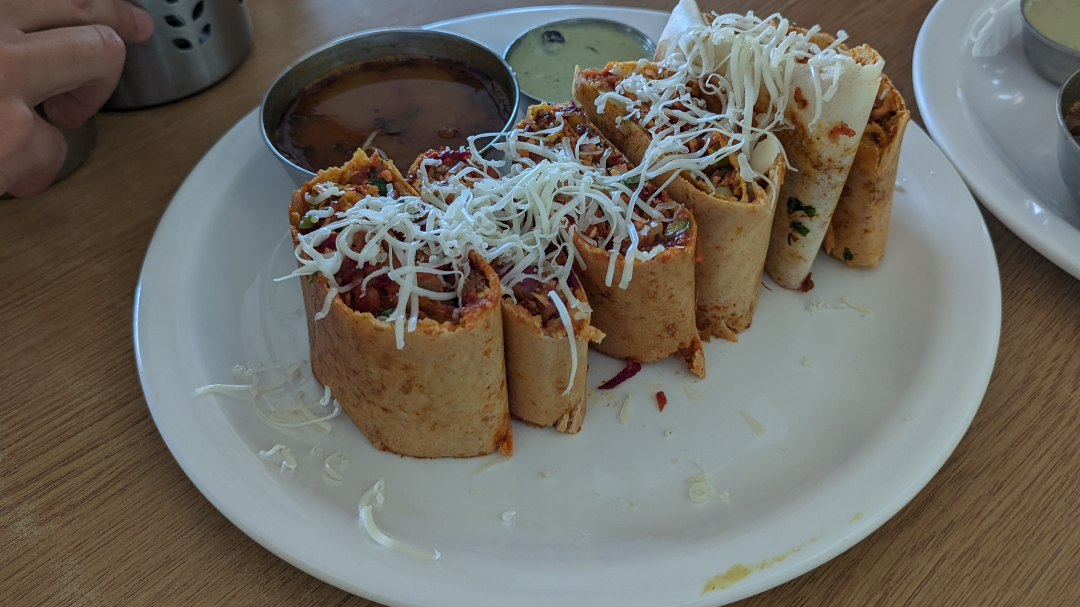 아침식사로 나온 두종류의 식사입니다. 이 지역은 모두 채식만해서 앞으로 결혼식에 나올 음식에는 모두 고기가 없습니다. 윗 사진에 있는 건 브리또 같이 맛있었고 찍어먹는 소스도 괜찮았는데, 아래 사진에 있는 하얀건 백설기 같은 식감에 떫은 맛이 있어 조금 먹기 힘들었습니다.