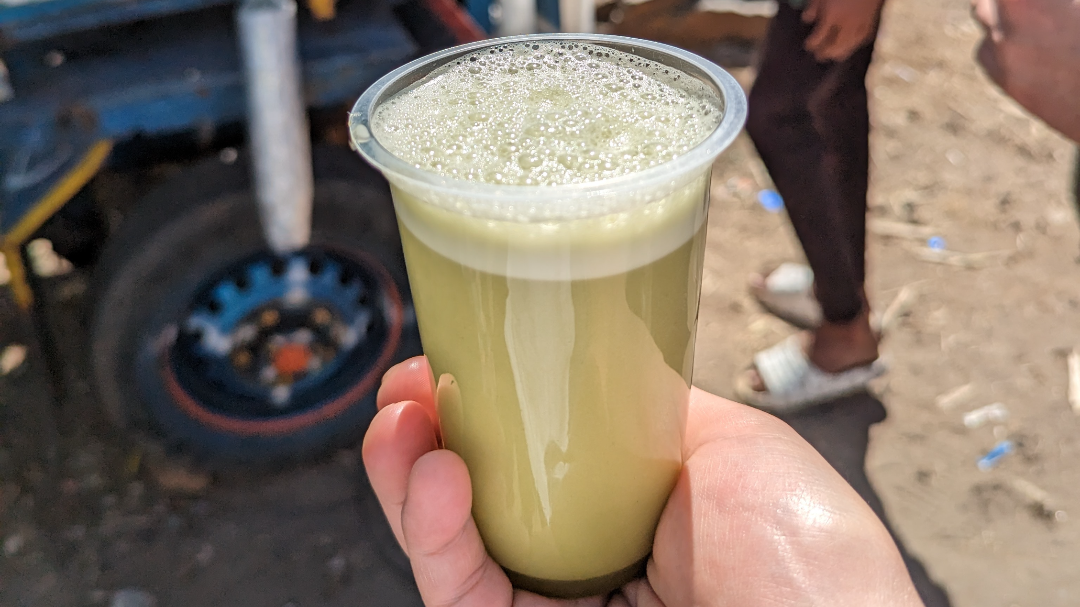 신발을 구매하고 결혼식장에 가는 길에 잠시 마실 것을 구매했습니다. 사탕수수 나무에서 나오는 즙을 그대로 음료로 만든 것인데 굉장히 달았고 소금 간을 같이 쳐줍니다. 시원하지 않았던게 좀 아쉬웠습니다. 가격은 한화로 150원 정도 했습니다.